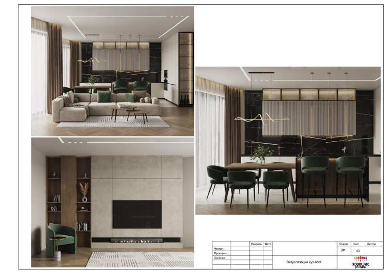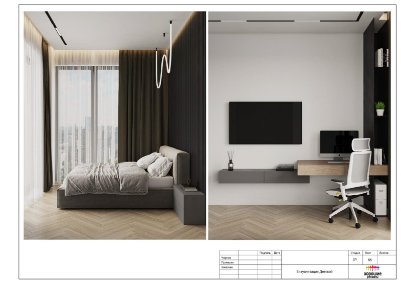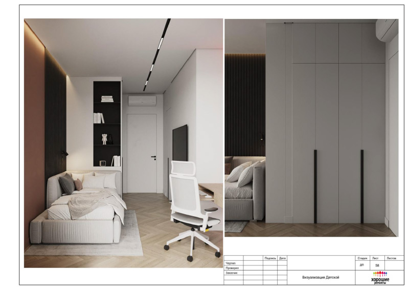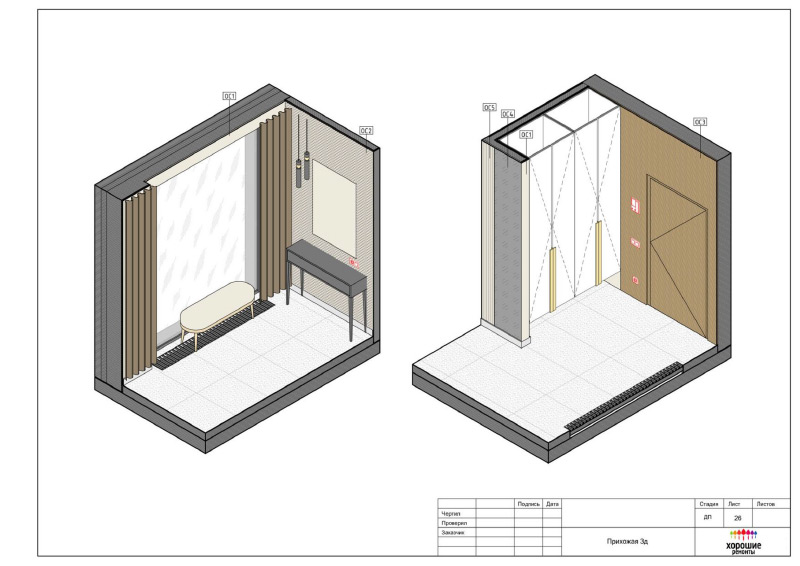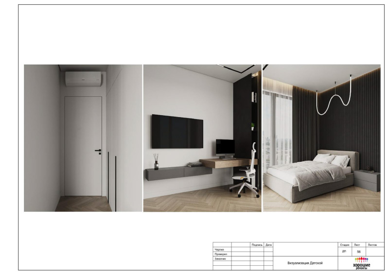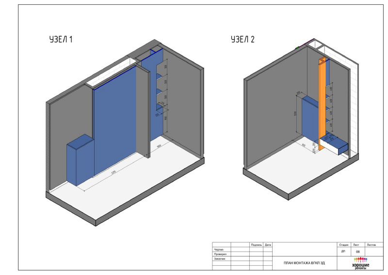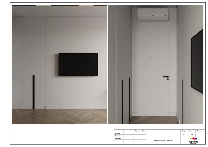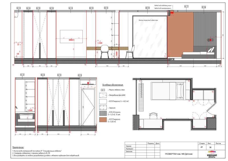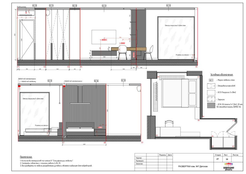 | Развертки стен по комнатам с привязкой декора и электрики, конструкции из ГКЛ |