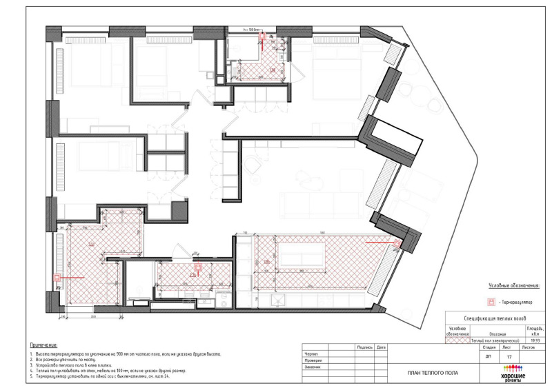 | План полов с указанием площадей и схемы переноса радиаторов |
