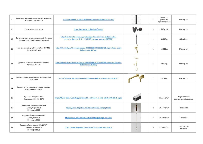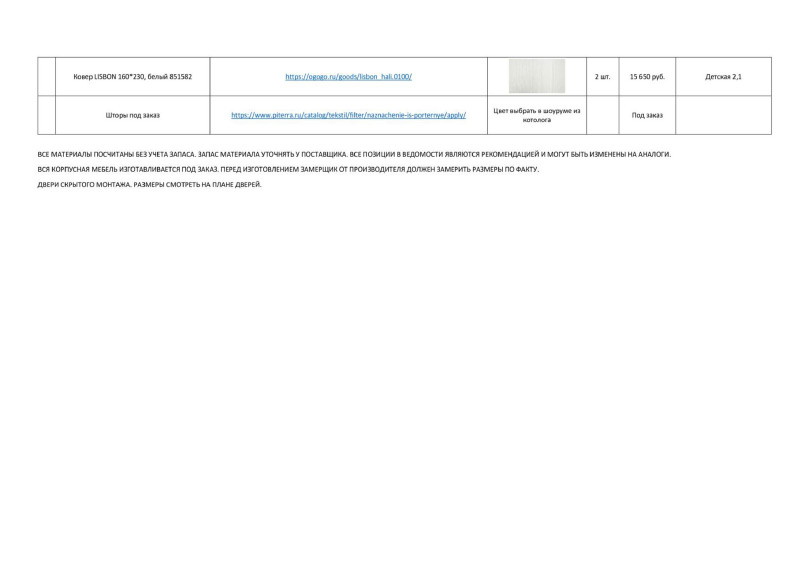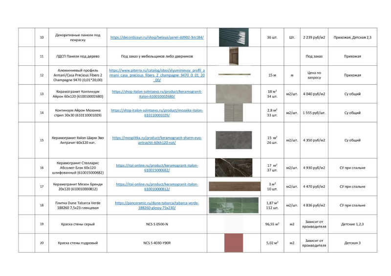 | Ведомость отделочных материалов (включая расчет кол-ва лепнины, обоев, плинтусов, площади стен) |