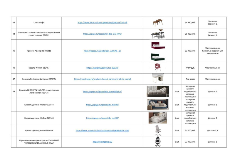 | План расстановки мебели и оборудования |