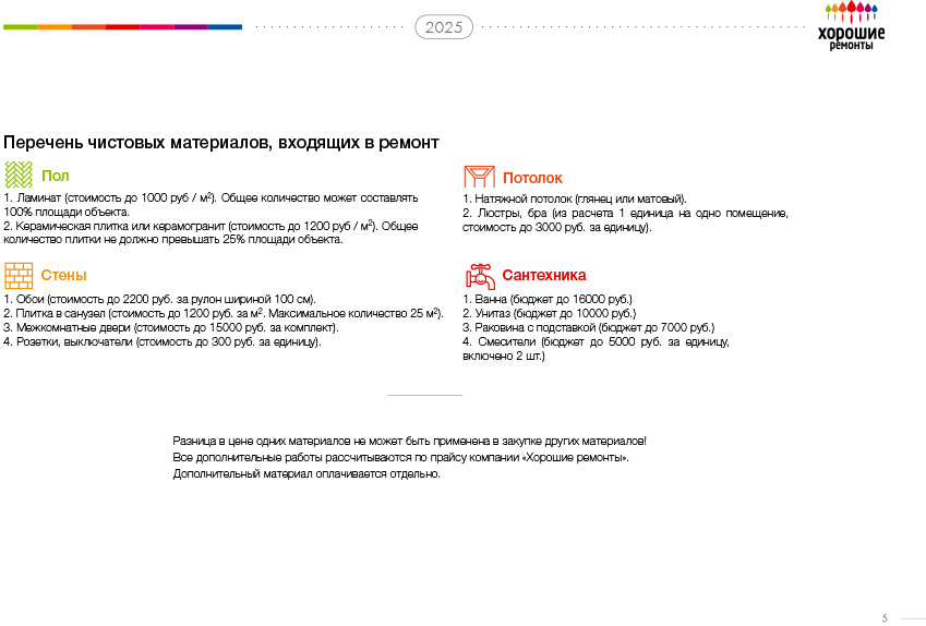 | Доставка черновых и чистовых материалов оплачивается ОТДЕЛЬНО |